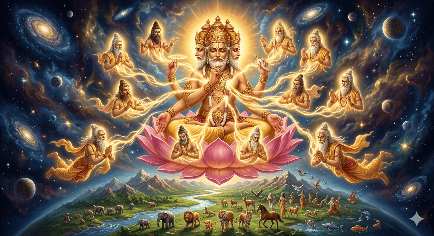 - Mahabharata, Shanti Parva: Gives a shorter version of the same narrative but frames it philosophically — Vishnu as the unchanging, Brahma as the changing, and the lotus as the bridge between them.