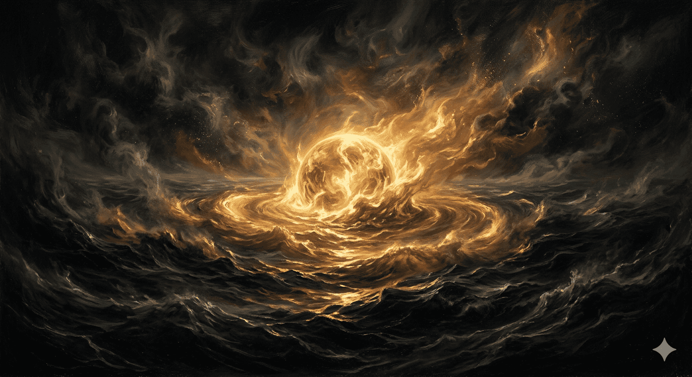 Core narrative: Before creation, there was only dark, undifferentiated water. Nothing existed — no earth, no sky, no gods. From within those waters, a desire or impulse arose, and creation began.