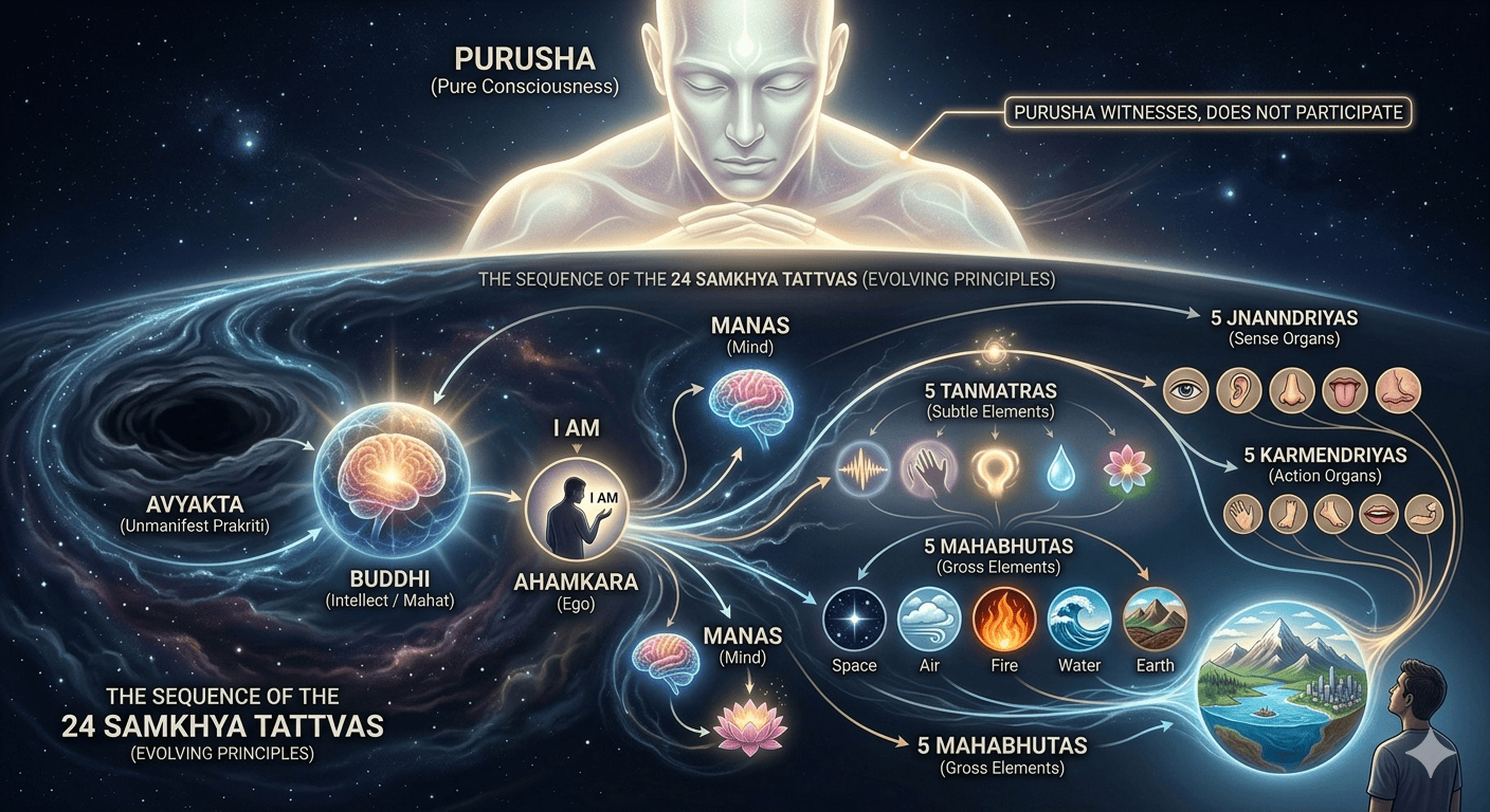 - Atharva Veda 19.6: Similar to Rigveda but adds that time (kala) itself was born from Purusha — making time a created entity, not a pre-existing framework.